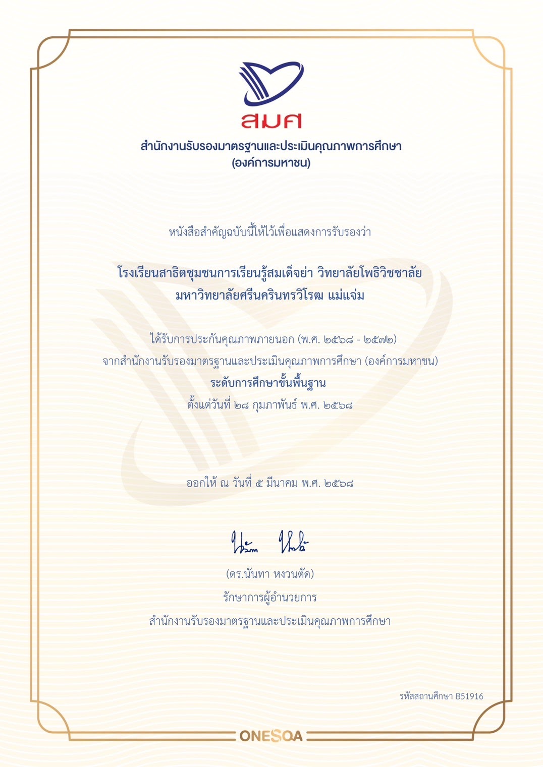 หนังสือรับรองผลการประเมินคุณภาพการศึกษาภายนอก (พ.ศ. 2568 - 2572)
